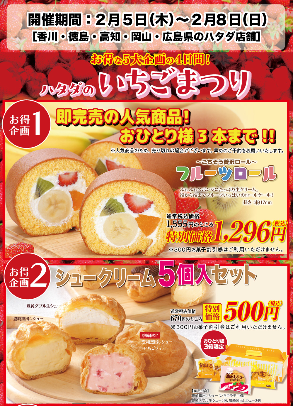 2026年 ハタダのいちごまつり開催![香川県•徳島県•高知県•岡山県•広島県]