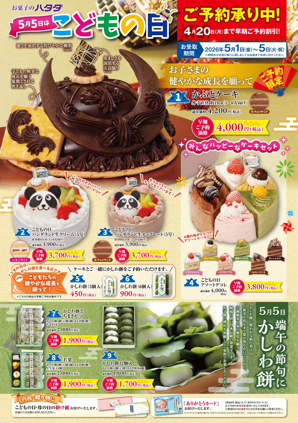 ハタダの菓子の彩り、趣、味わいをお楽しみください。