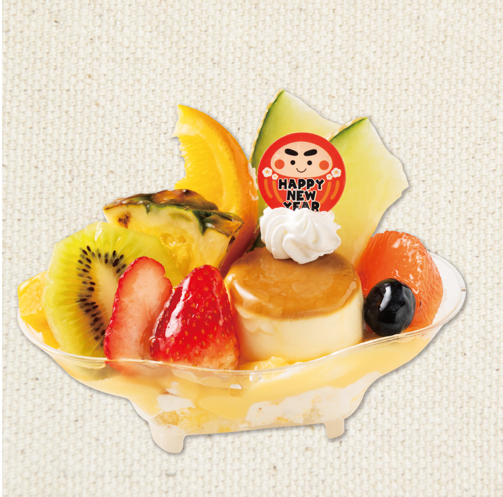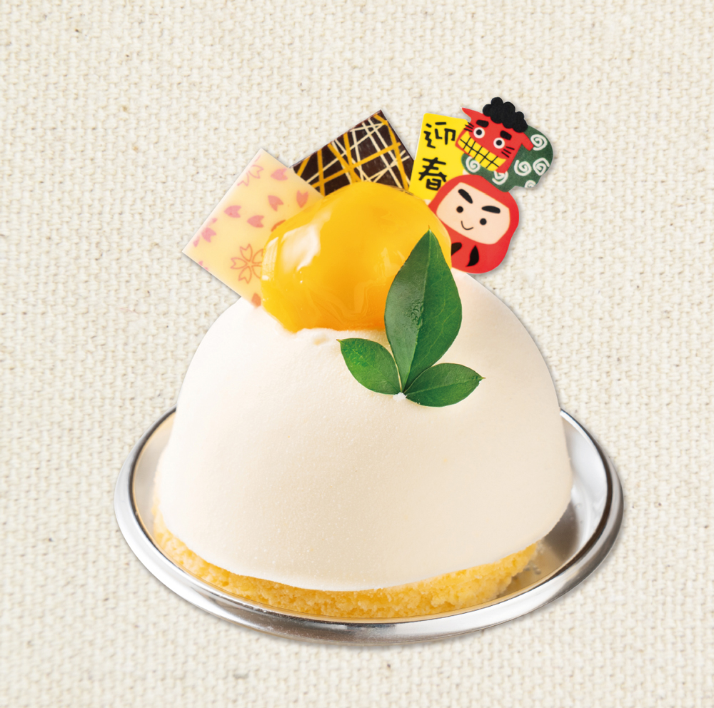 バニラとチョコムースに栗をのせて鏡餅に見立てた、年末年始限定デザインのお正月ケーキです。