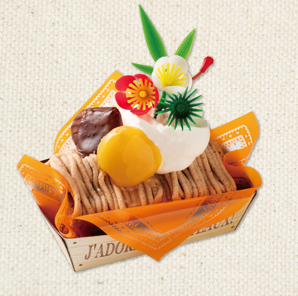 年末年始限定デザインの、渋皮栗とカシスの風味がおいしさを引き立てるモンブランです。